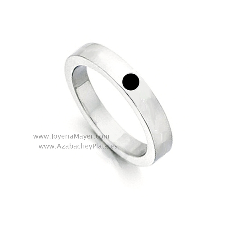 Anillo de azabache y plata, mod. Anillo de azabache y plata círculo liso estrecho.