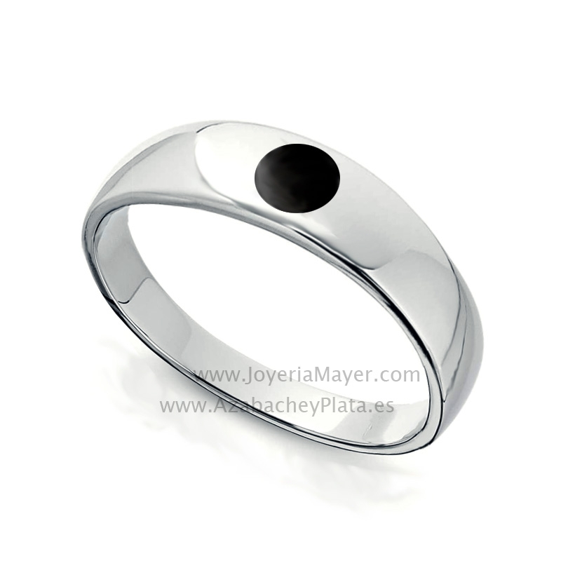 Anillo de azabache y plata 925, mod. Anillo de azabache redondo curvo y plata.