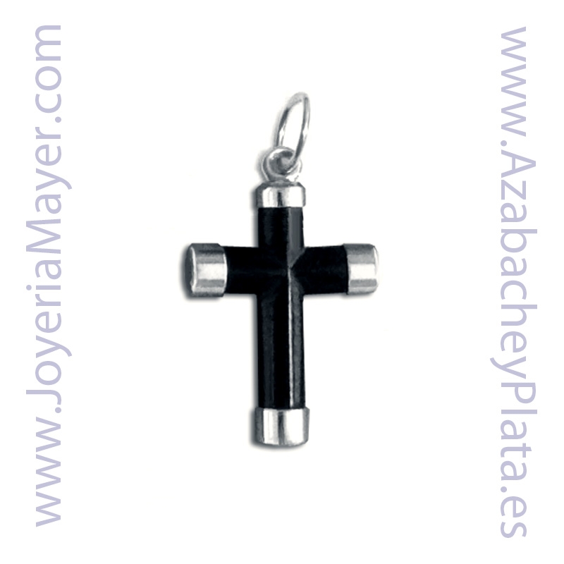 Cruz de azabache y plata, mod. cruz de azabache talla palo de 4 casquillos de plata.