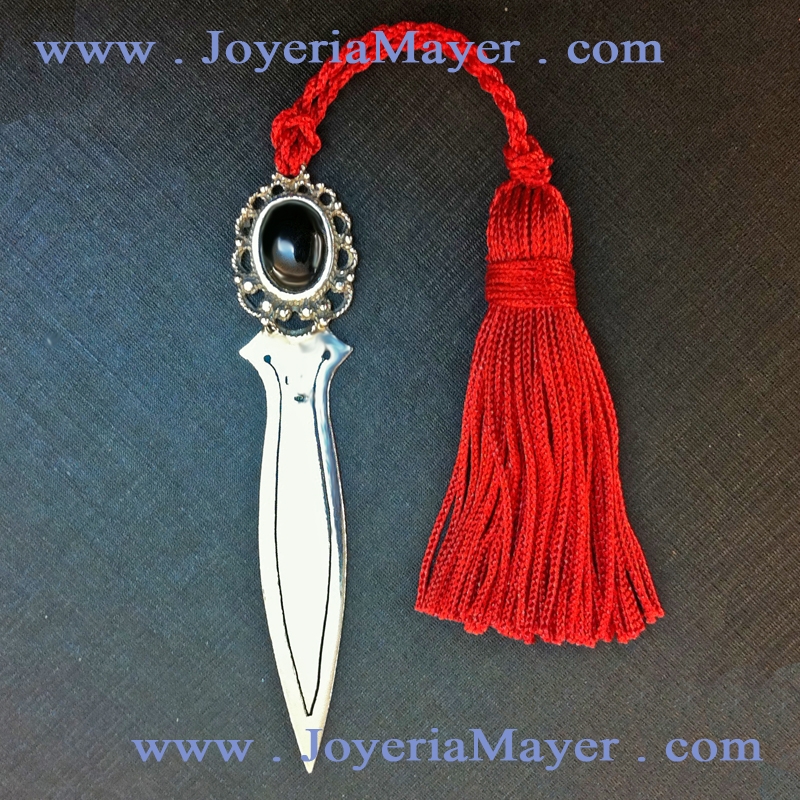 Marcahojas de azabache y plata, mod. marcahojas de filigrana de plata y azabache oval grande.