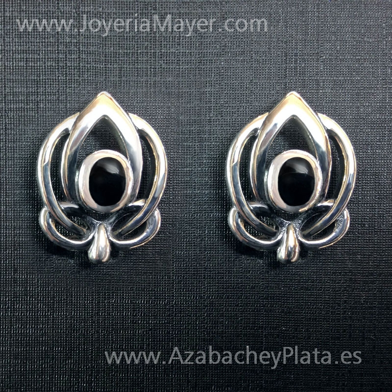 Pendientes de azabache y plata, cierre clip omega, mod. pendientes de plata y azabache oval en lazo nouveau omega.